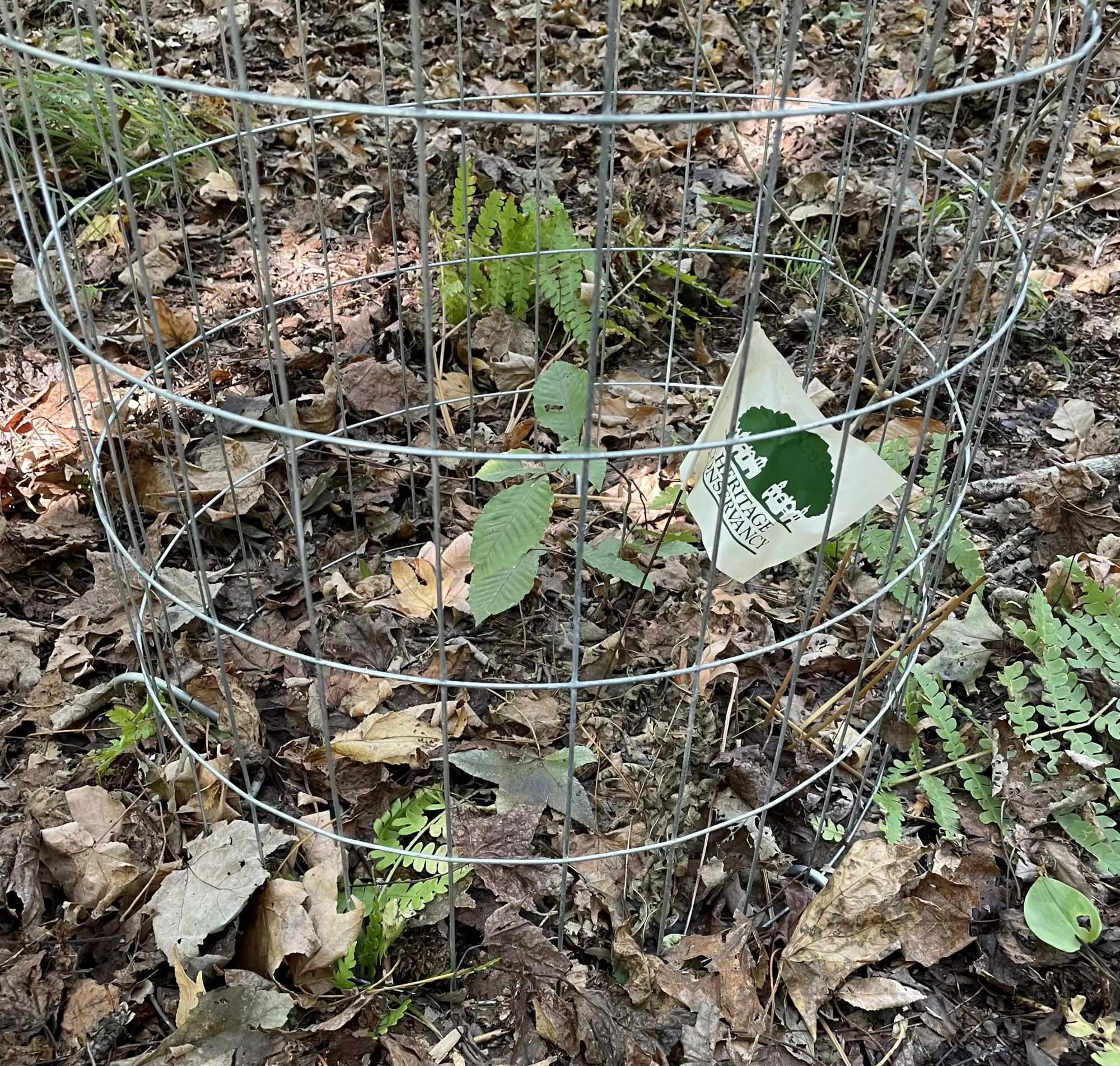 Cages must be constructed, cost more (about $11 per tree), and are a magnet for invasive vines of all kinds. But trees grown in wider cages can swing with the wind and grow stronger stems, and cages become nearly invisible from about 30 feet away.