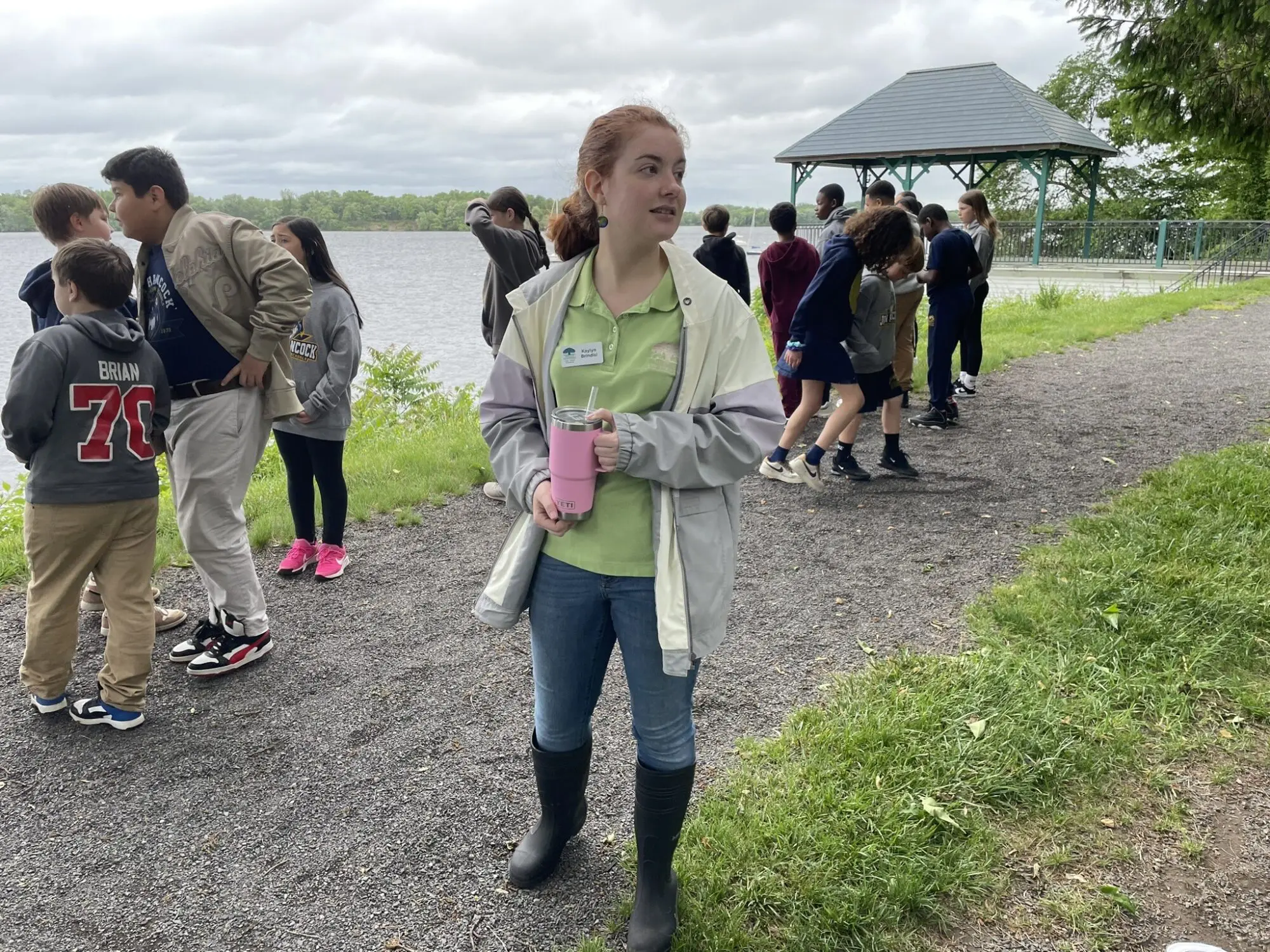 As part of the day’s activities, students wrote in their nature journals and enjoyed a nature meditation with Kaylyn Brindisi, Community Programs Associate (above) along the banks of the Delaware River.