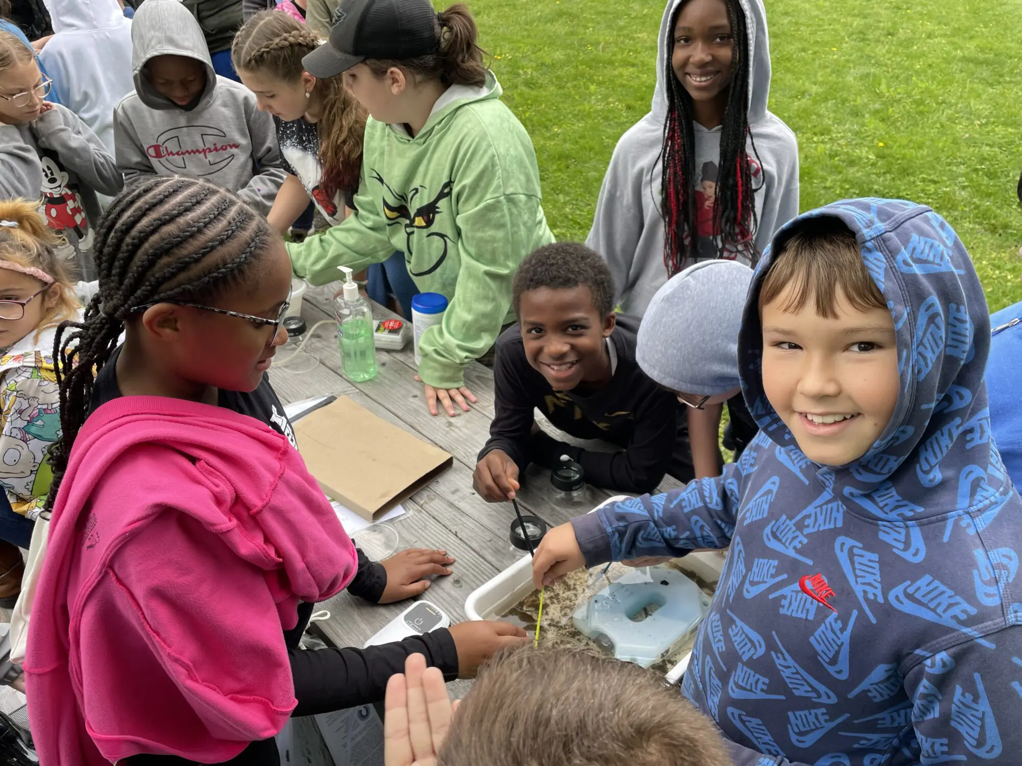 Students have been studying their parts of the watershed and comparing notes, quite literally. Each kid in the program is paired with a pen pal at a different school, and they have been writing to each other, exchanging hand-written letters to share the information they collect in their local creeks. The field trip allowed the students to meet their pen pals in person.
