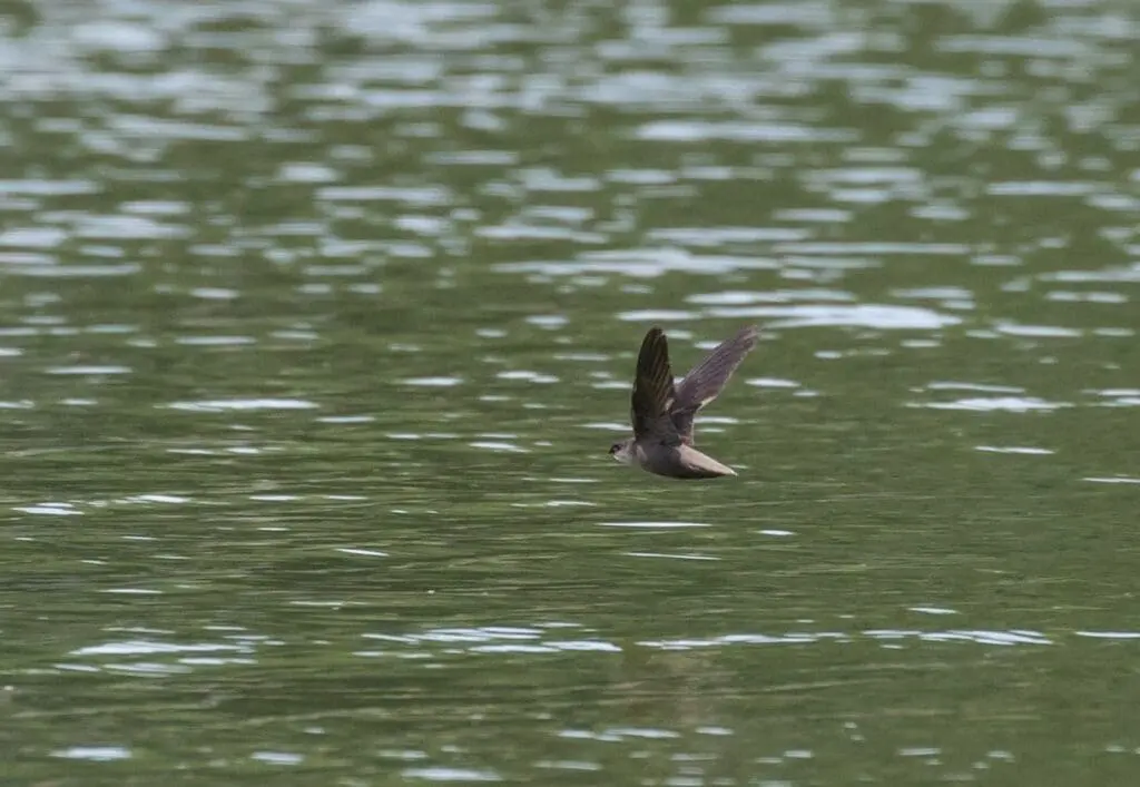 A chimney swift flies over Centennial Lake in Maryland. Photo by Howard Patterson.
