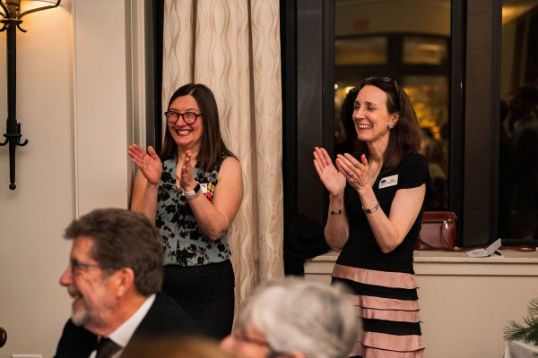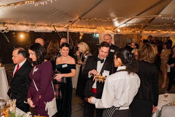 Guests posed for photos in the mansion’s intimate side lounge, previewed auction items in the Mercer Dining Room, and joined the joyful crowd in the Fernberg Family Library and the heated tent beyond. There they mixed and mingled while enjoying appetizers, cocktails, and sparkling conversation.