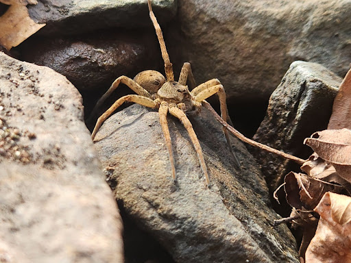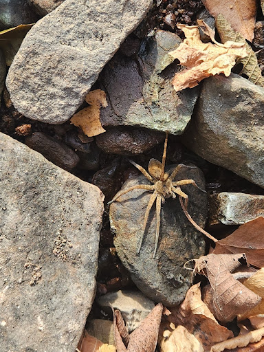 This banded fishing spider was found under a rock beside a small stream in Northampton Township in November, while a mixed flock of song birds, including some bluebirds, flitted through the treetops overhead.