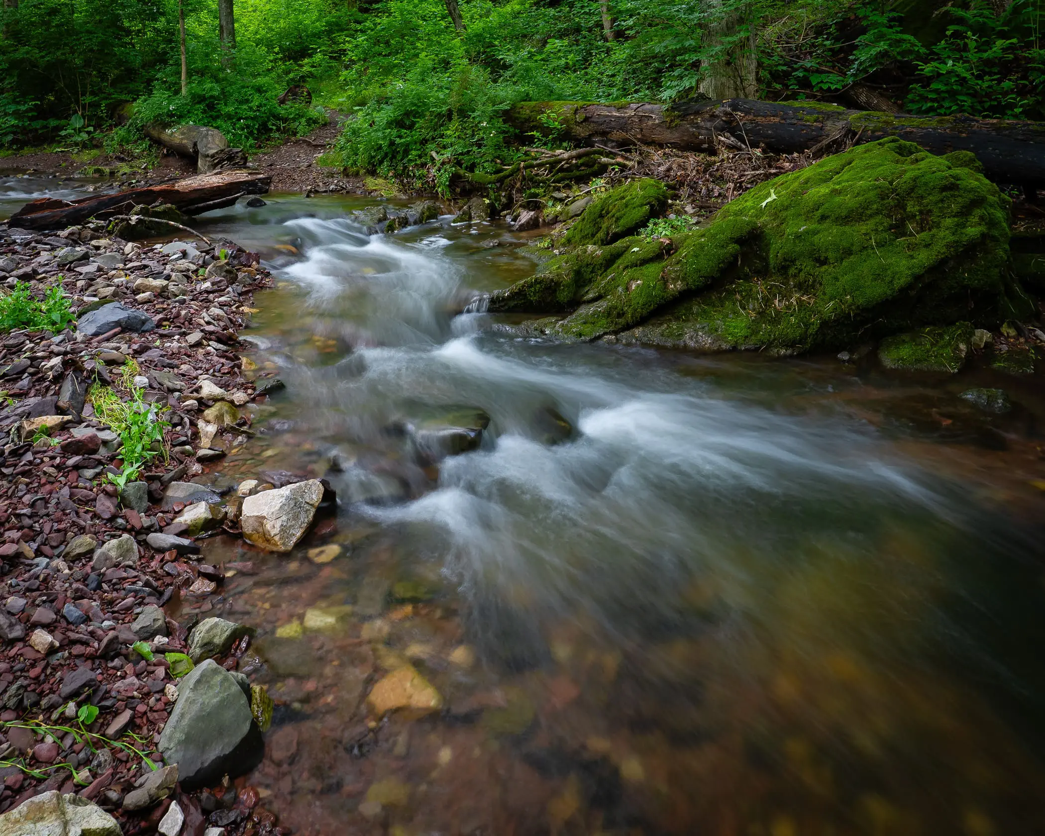 Cook’s Creek is recognized as a significant cold water breeding area for native trout and is one of only two streams in Bucks County designated as Exceptional Value for its water quality and biodiversity. It is also a designated and protected Cold Water Fishery, affording a home or migratory corridor for cold- water fish, and numerous types of insects and invertebrates. In a 2025 mini-BioBlitz, an American eel was found in the stream.
