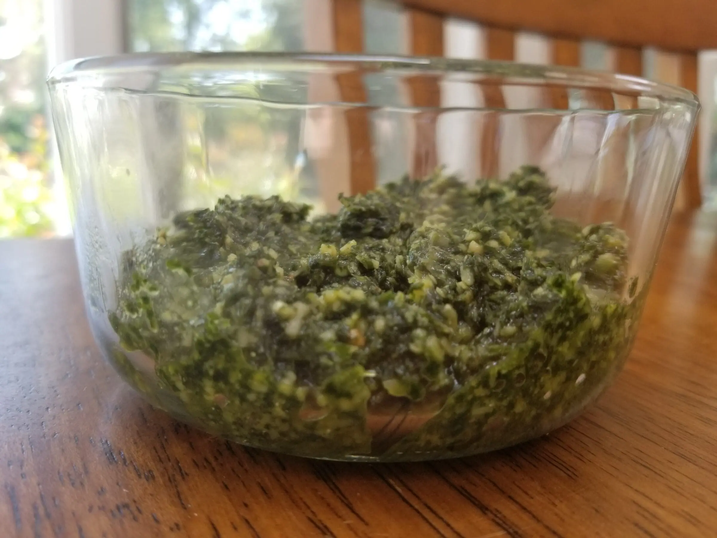 Homemade pesto made with garlic mustard