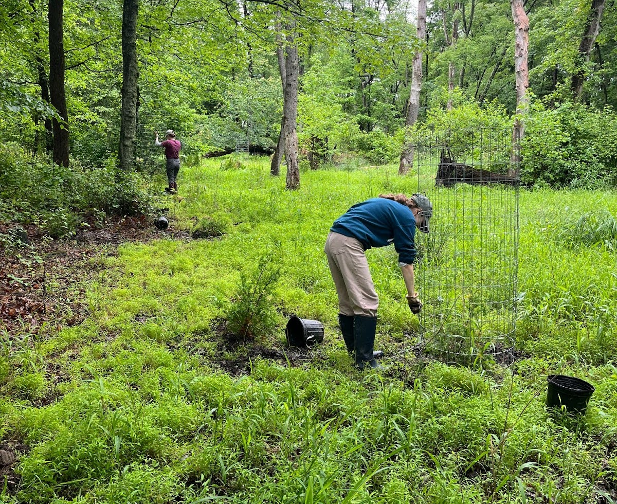 Interning with Heritage Conservancy has provided me with many useful skills and experience in land management. One of my favorite projects we did this summer was the reintroduction of the Atlantic white cedar to Croydon Woods Nature Preserve. The Atlantic white cedar is a species native to Atlantic Coastal Plains states, including southern Pennsylvania. However, in Pennsylvania, Atlantic white cedar is considered extirpated, meaning it can no longer be found growing in the wild in this state. The loss of this species is primarily due to past logging. Heritage Conservancy’s Croydon Woods Nature Preserve is part of the Atlantic Coastal Plains of Pennsylvania. This summer, we planted 75 Atlantic white cedar trees in Croydon Woods in hopes of establishing a healthy population in its native habitat. I enjoyed this opportunity with Heritage Conservancy to help bring this species back to the Atlantic Coastal Plains of Pennsylvania.