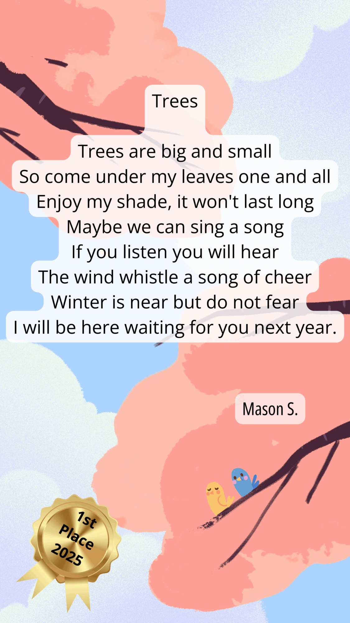 Our congratulations to all of our winners and to everyone who contributed. Hats off to the young writers who read their work aloud at the event.