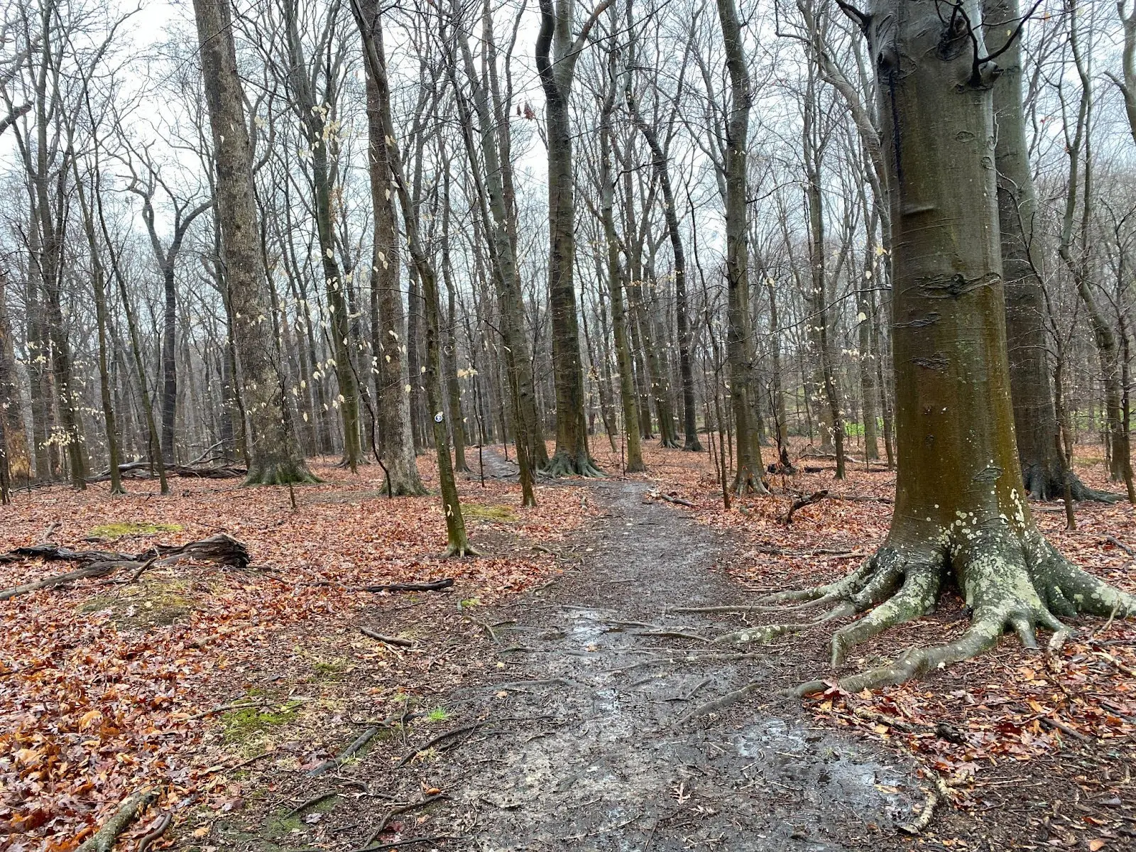 An empty preserve (Hart’s Woods) on a rainy day in April.
