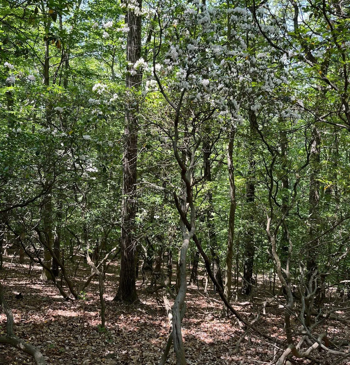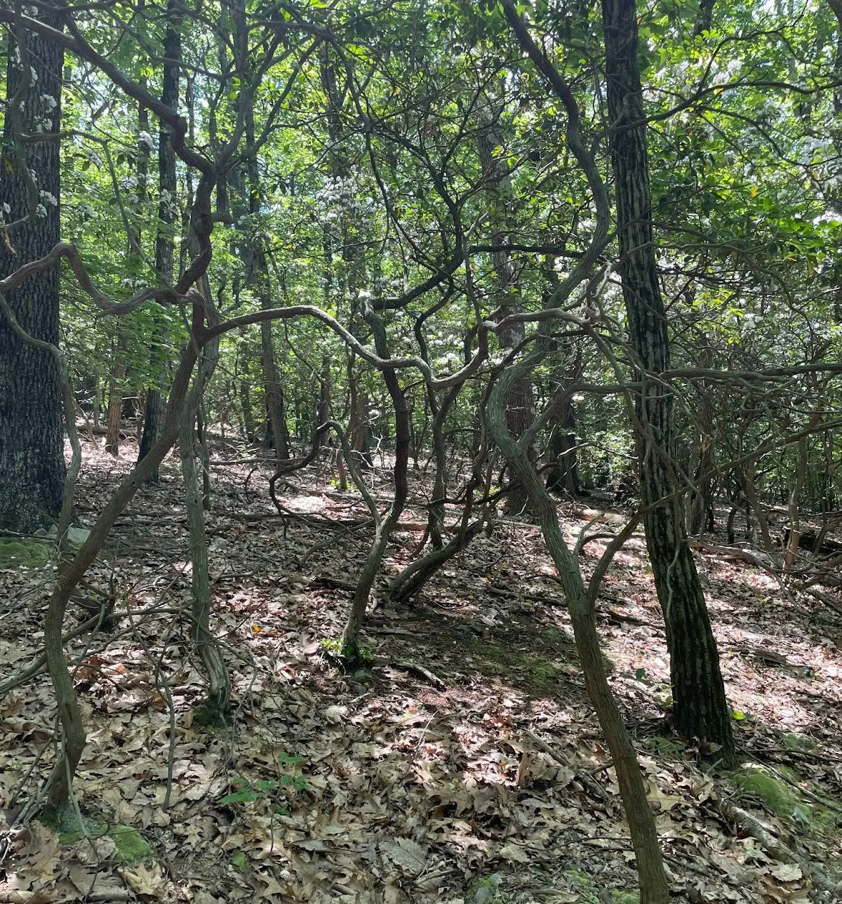 Over-browsed mountain laurels begin to resemble trees with few leaves (Photo by Lexi Kindred).
