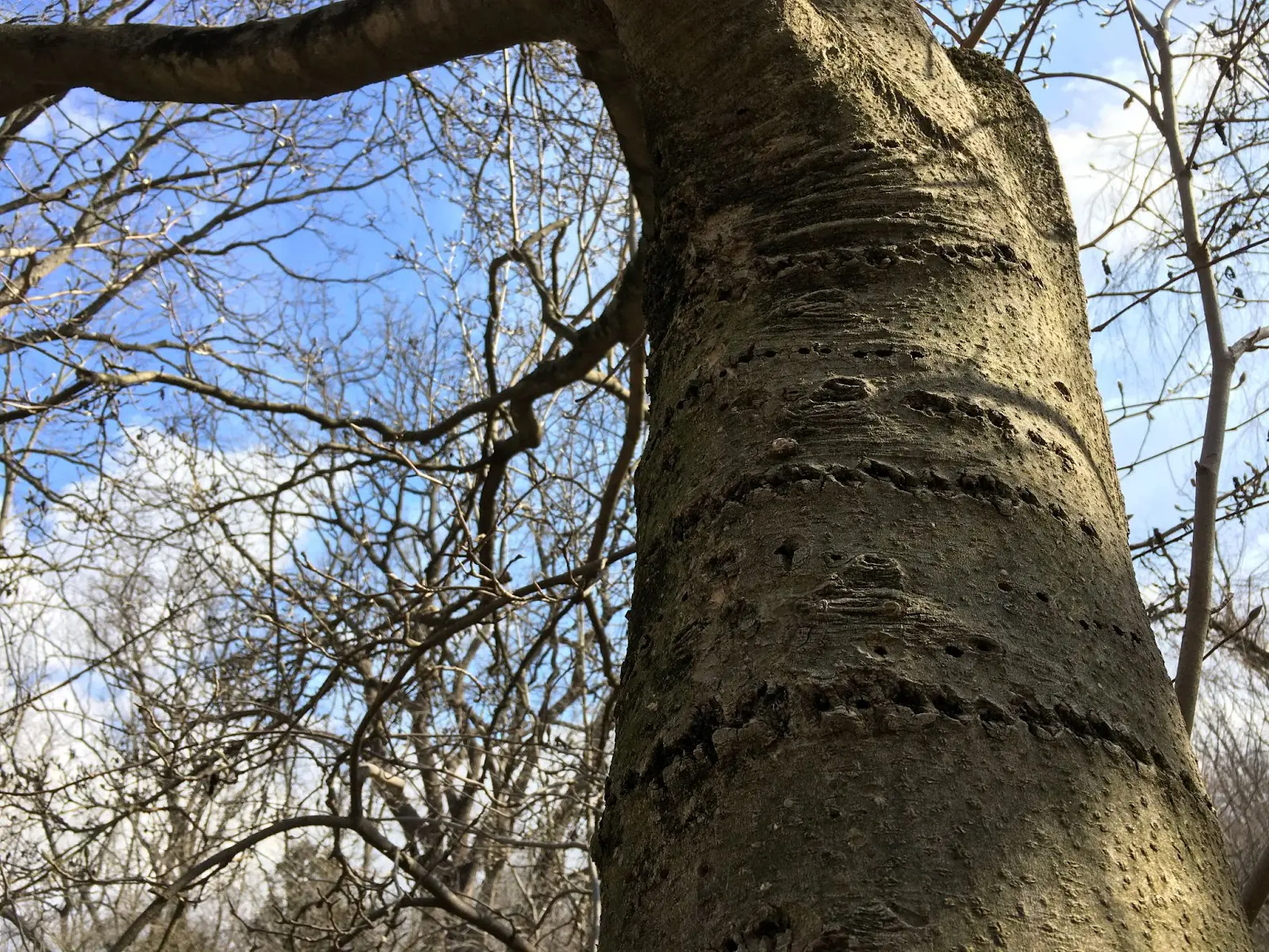 It isn’t always necessary to find an actual bird in order to verify its existence, whether current or former, in a forest. Woodpeckers leave their mark on trees in rather obvious ways. As you’re probably familiar, this group of birds hammers into the trunks and branches of trees to forage for insects and occasionally sap. It just so happens that at least two species do so in recognizable ways that stand out considerably during the winter.