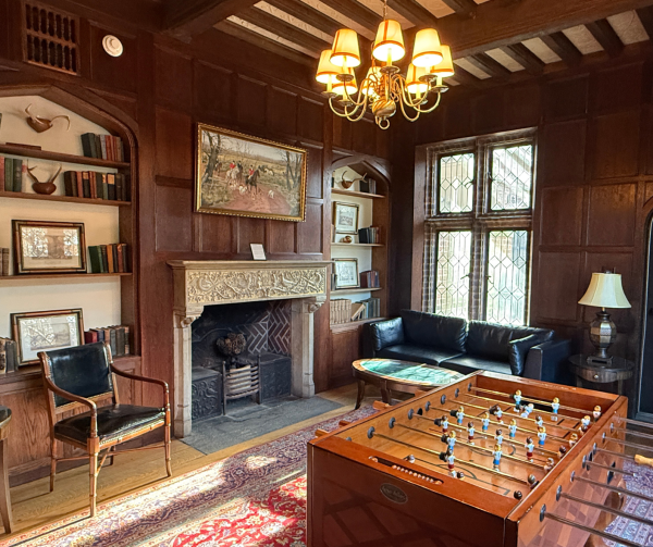 Today, this room is used as a lounge for wedding parties at Aldie, and place where nervous grooms and their groomsmen might gather before ceremonies. There’s a foosball table in there now, but step back nearly a century and you’ll find a space that reflects the artist that built it, and where we think he’d be watching the Super Bowl if he were alive today.