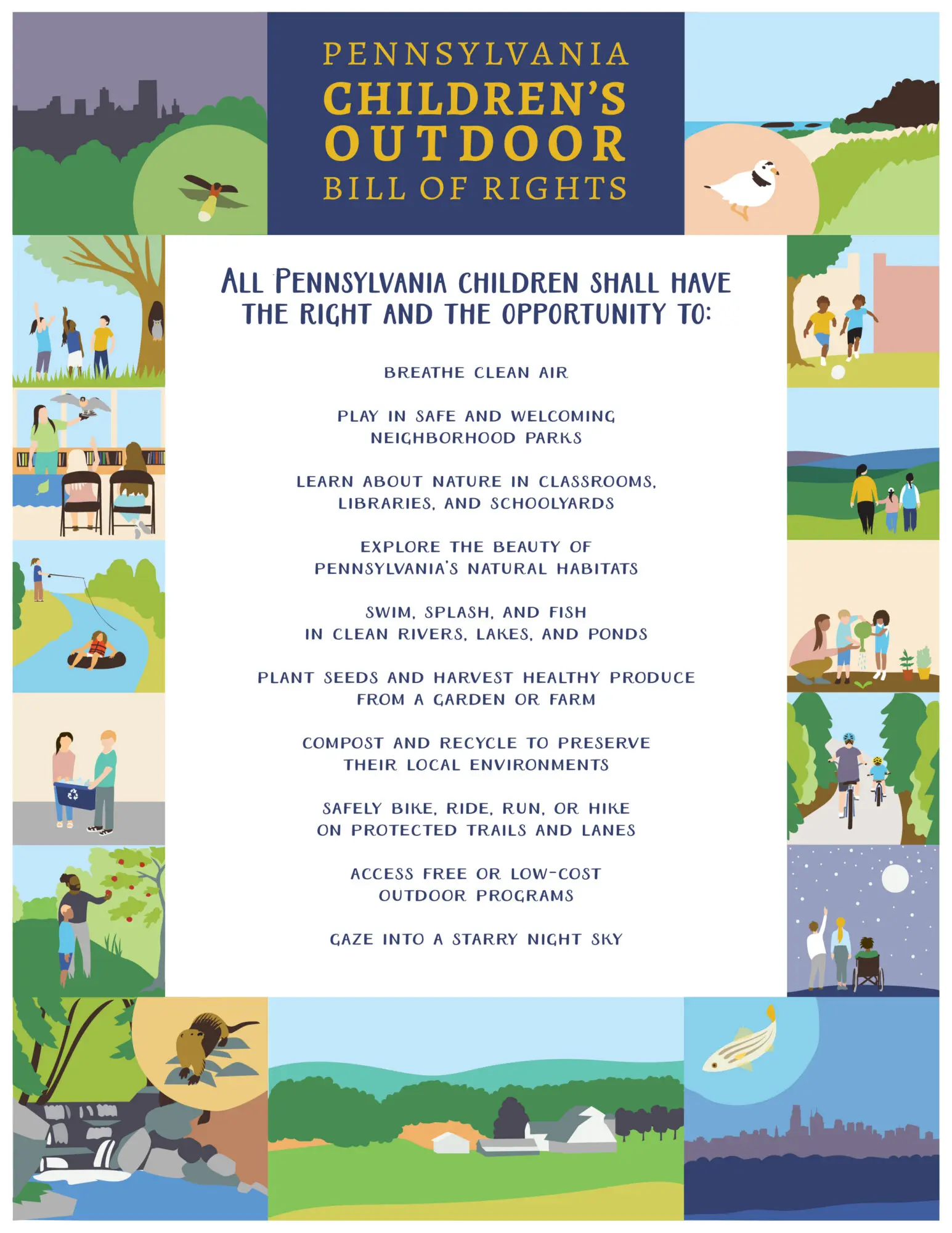 As part of its advocacy and community outreach, Heritage Conservancy has signed on to the Pennsylvania Children’s Outdoor Bill of Rights that is mentioned in the story. It is part of a growing movement to assure that all kids in Pennsylvania have access to safe and clean outdoor spaces and the benefits that time in nature affords them. Learn more.